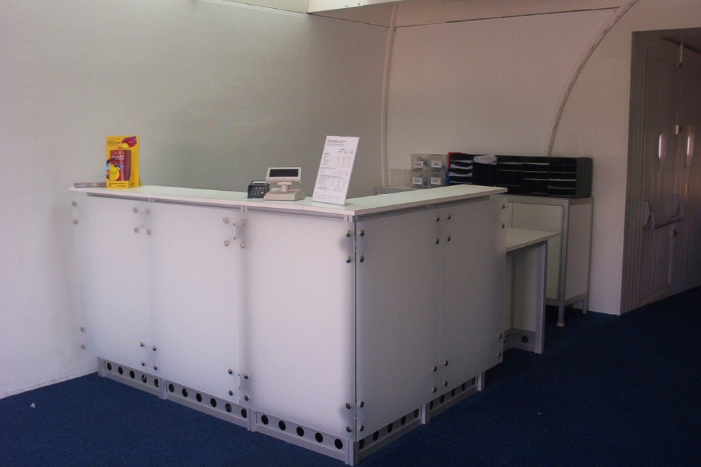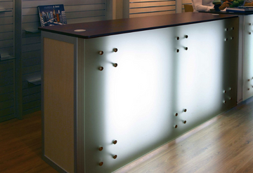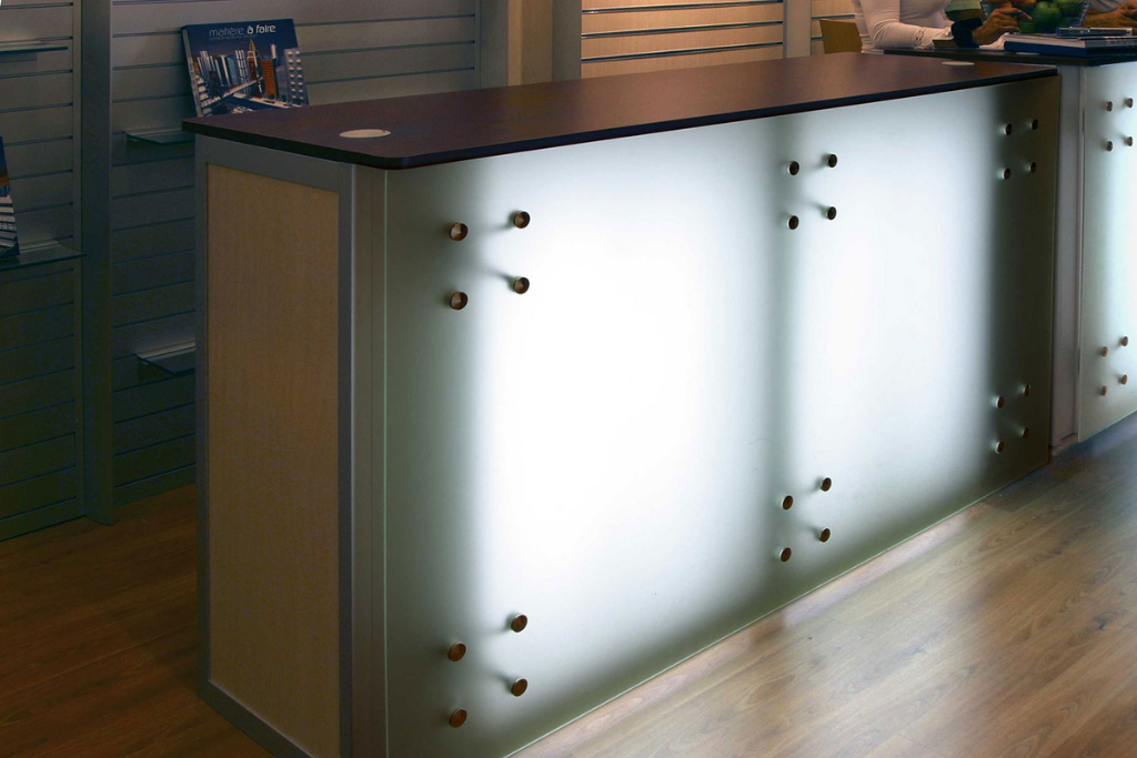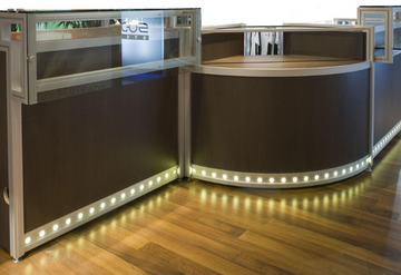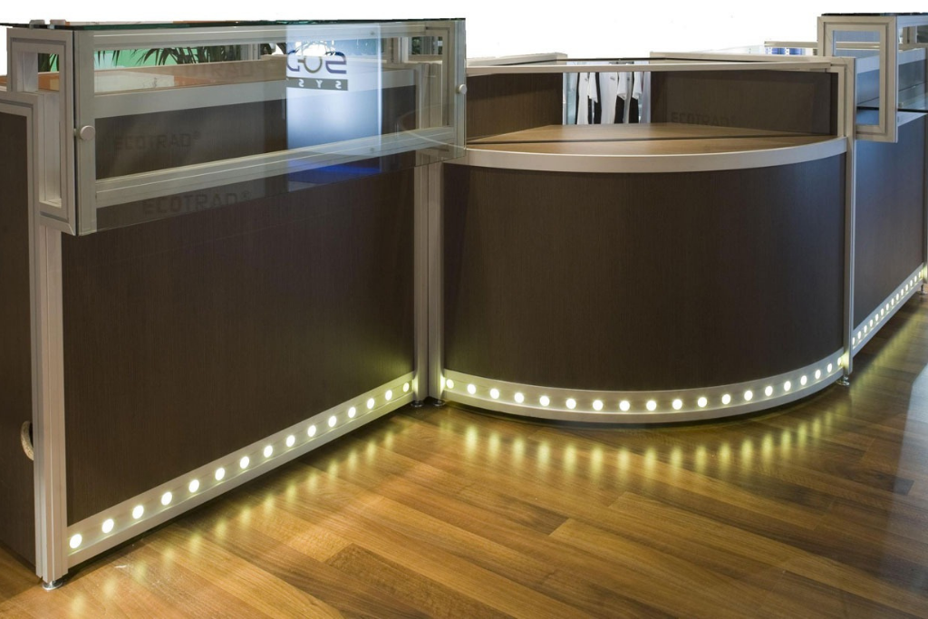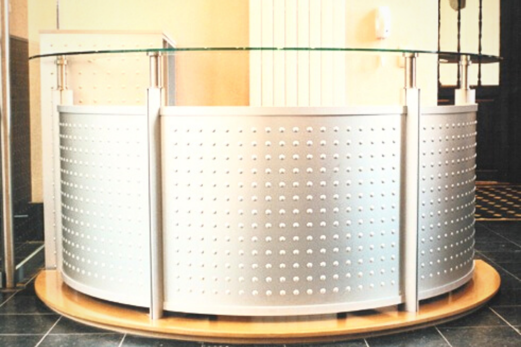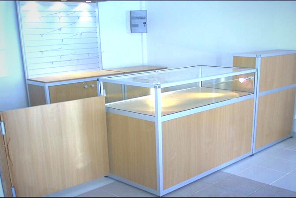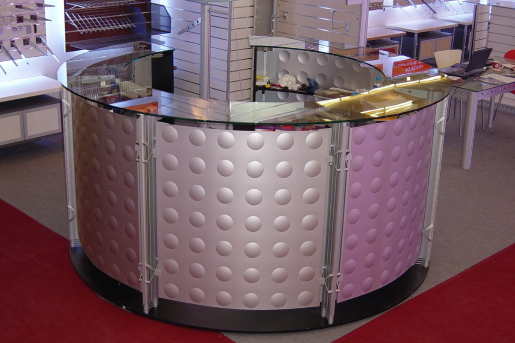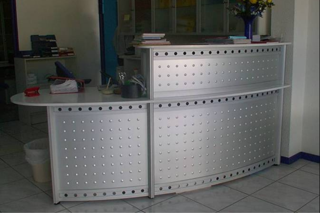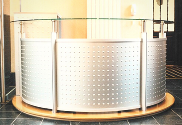 Curva en Aluminio, madera y vidrio